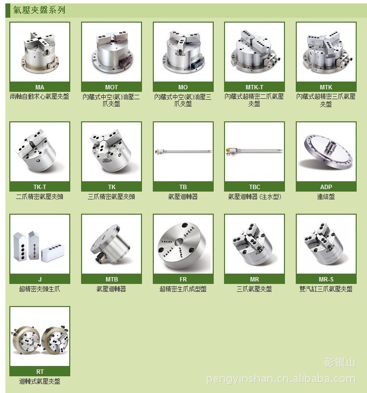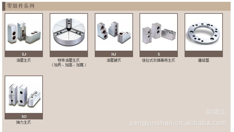 - 主要產品:油壓夾頭、氣壓夾盤、手動夾頭、超薄夾盤、鋼殼夾頭、零組件、LMC輪轂夾頭系列、DIN歐規夾頭系列