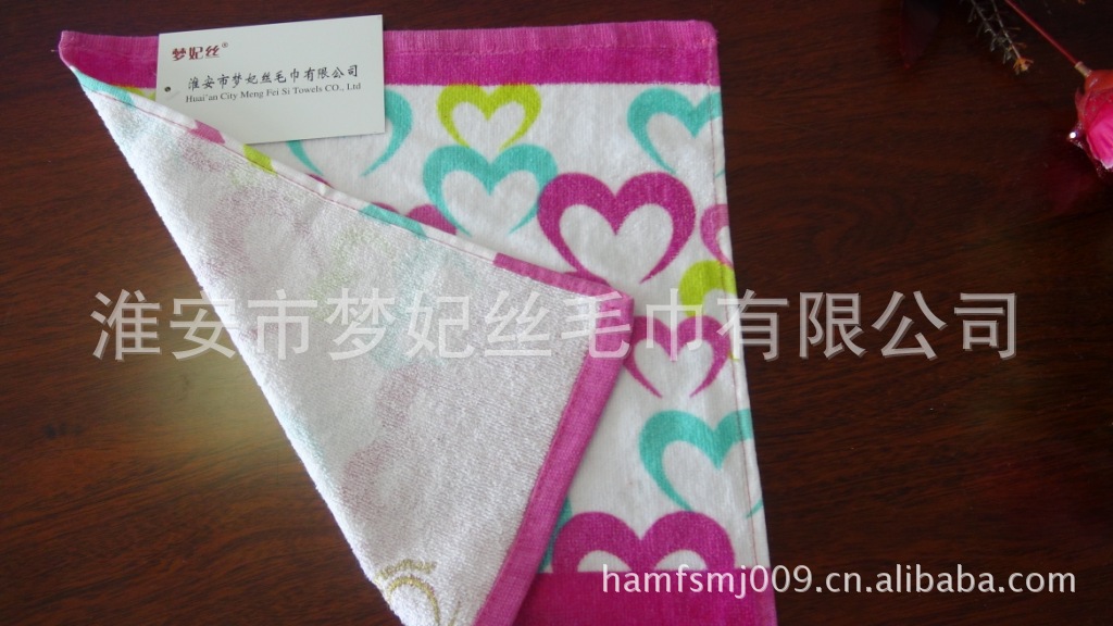 淮安市梦妃丝毛巾有限公司是一家专业从事高档、精品毛巾类产品织造的现代化生产企业。产品原料全部选用上等一级100%纯棉精制而成,经久耐用、纯白度高、手感好、色泽鲜艳、吸水性好、花样丰富、不褪色。公司主要产品有:方巾、面巾、浴巾、地巾、毛巾被、枕巾、沙滩巾、地垫和浴袍等上千个品种和各种规格,是一个集科研开发、生产加工、市场营销为一体的企业实体。