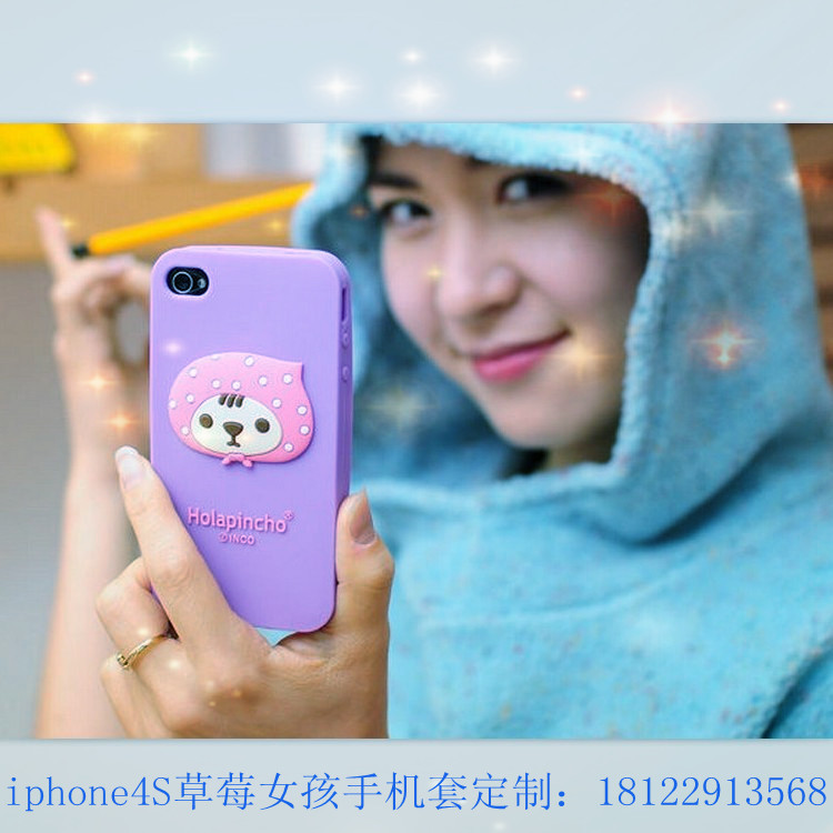 【产品名称】:iphone4硅胶草莓女孩手机套