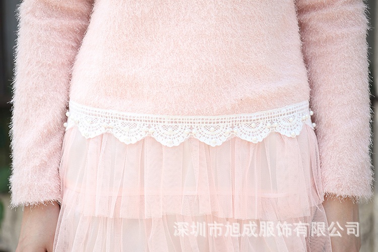 时尚钉珠拼布女装新款连衣裙 爱诺儿品牌女装公主裙网纱连衣裙