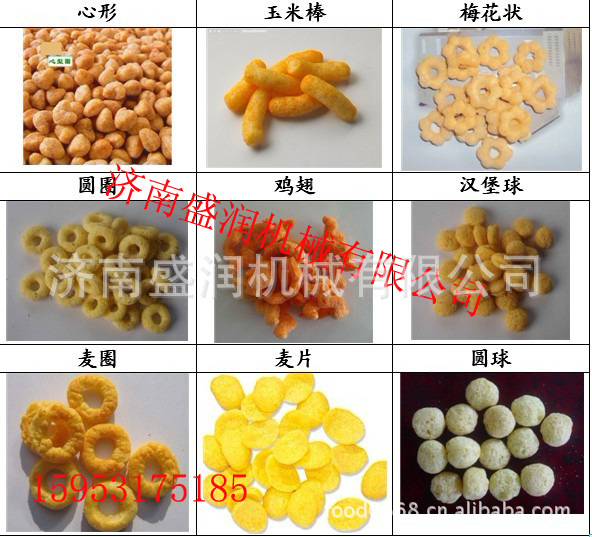 麦圈、麦片 拌粉机、上料机、双螺杆膨化机、风送机、烤箱、调味线、包装机