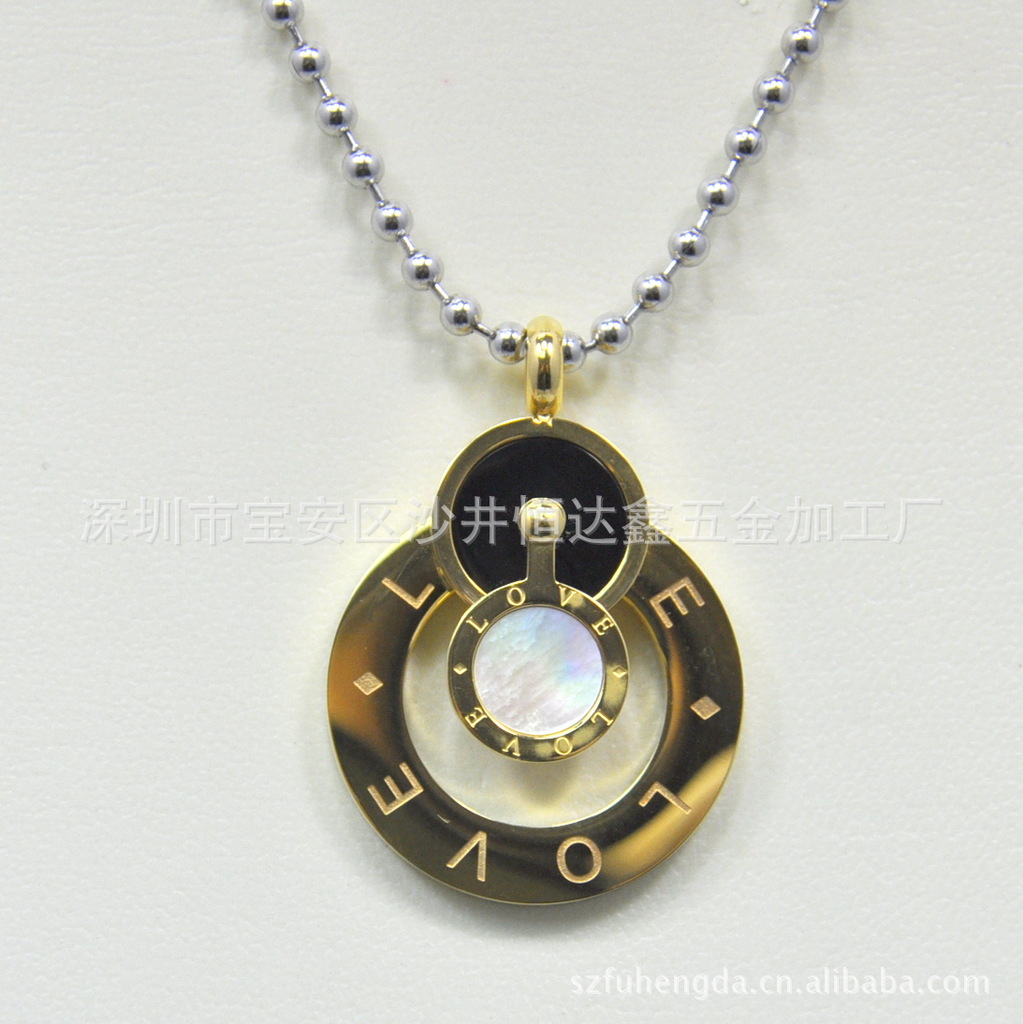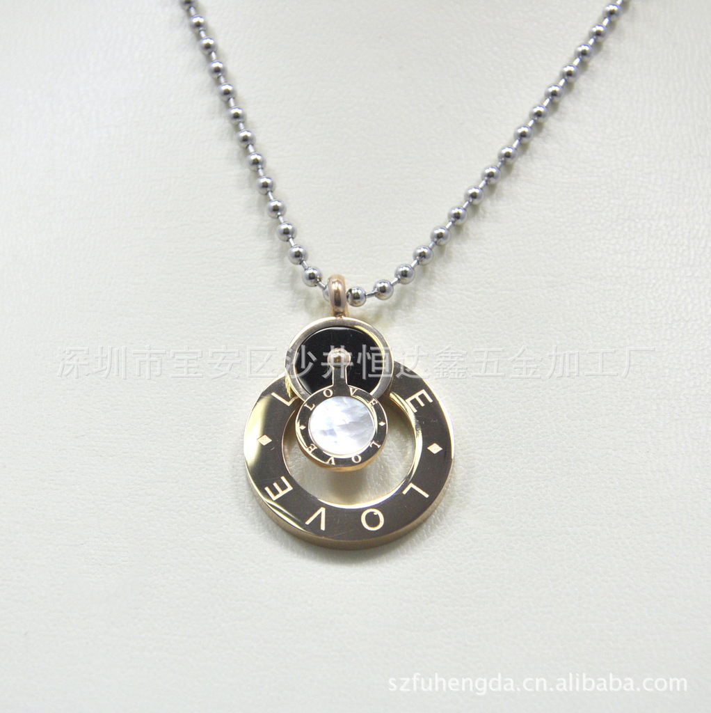 韩国项链 钛钢LOVE吊坠 钛钢项链 情侣吊坠 不锈钢贝壳吊坠批发