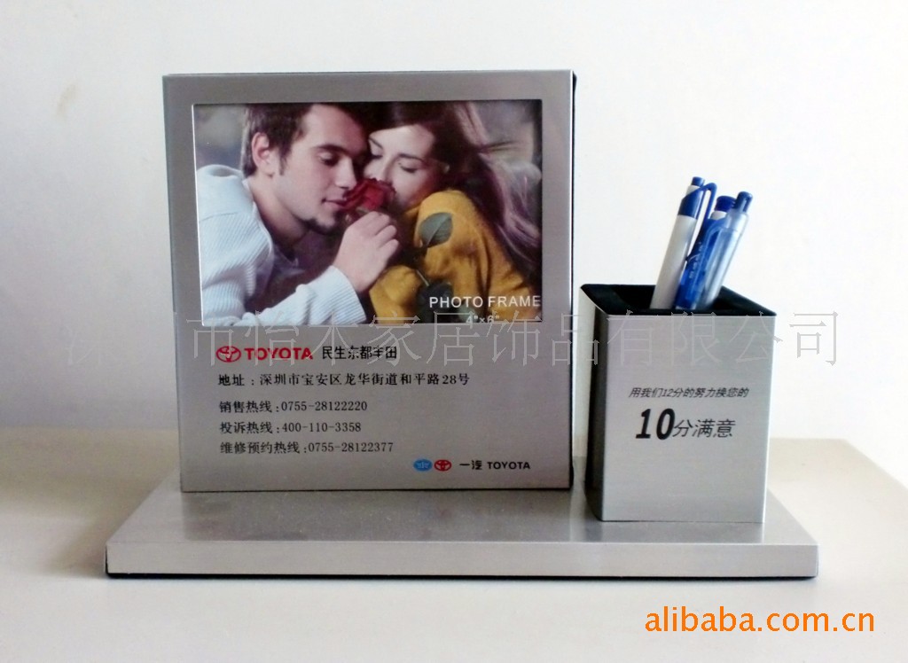 本厂生产的产品种类有:铝质相框相册、金属相框相册、木相框相册、烤漆相框、金属台历、镀银金属相框、铝合金带时钟相框、铝合金小证件框、木加铝笔筒、镶珠铝相框、合页式铝合金相框、贴布相框、仿皮相框、玻璃相框、木加铝相框、铝加PU相框,铁相框,相框表面可以做阳极氧化处理,款式美观大方,多种颜色可供选择,还可以丝印,冲压各种LOGO,相框品种繁多,款式可以按照客人的要求设计制做。