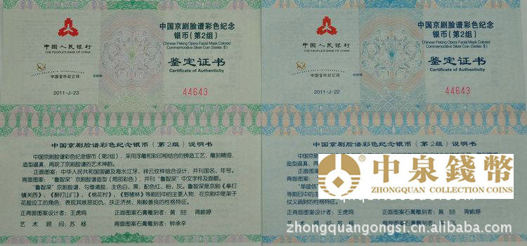 三、该套金银纪念币由深圳国宝造币有限公司铸造,中国金币总公司总经销。