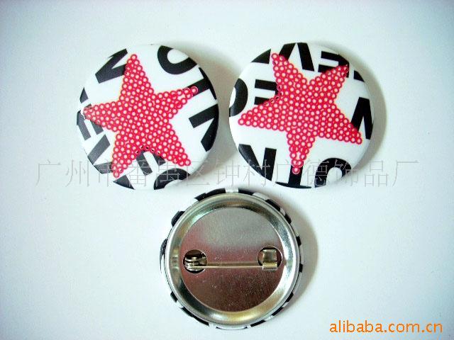 材质 | 铜板纸印刷+马口铁+塑料底+安全别针 | 包装 | PP袋单独包装,1000pcs/箱 |