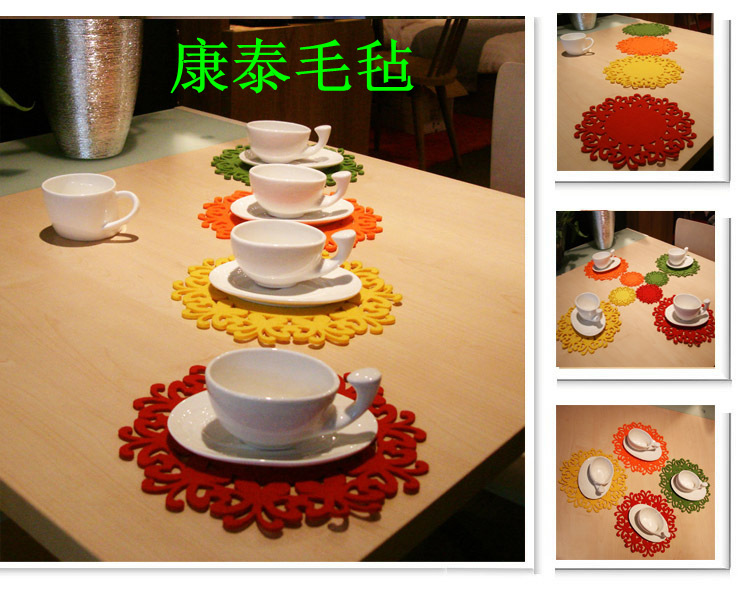【宝贝名称】:创意时尚多用垫/杯垫/碗垫/隔热垫/盘垫/餐垫/毛毡装饰 镂空花杯垫