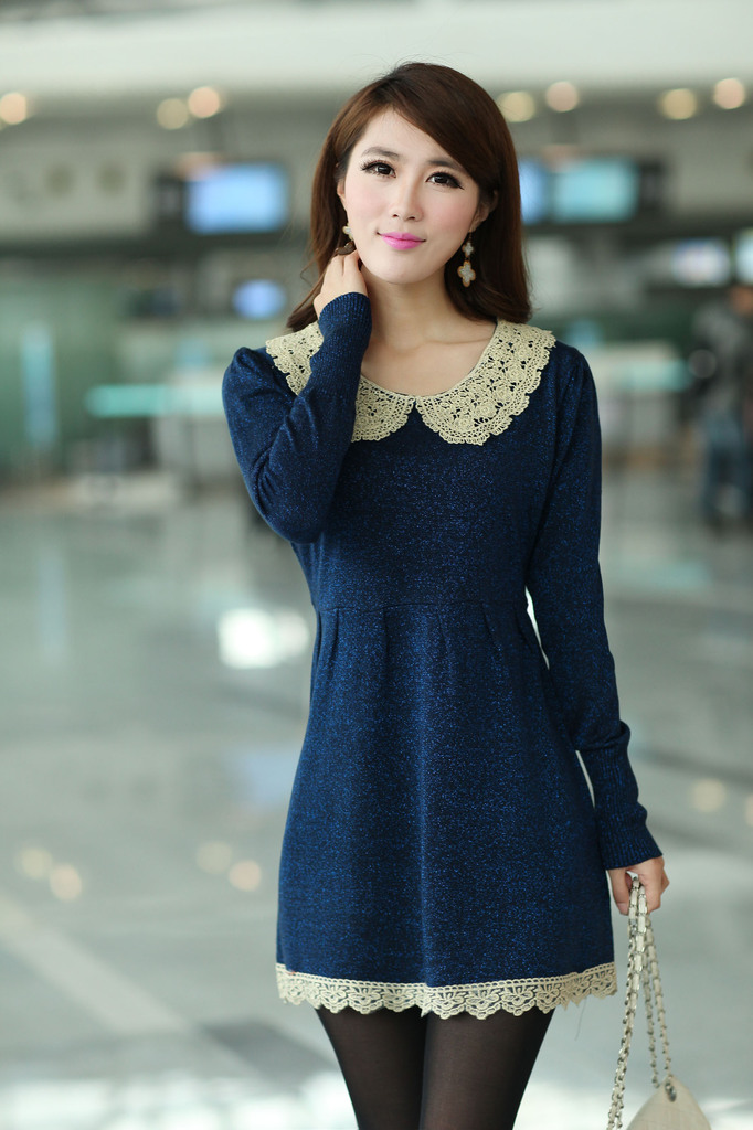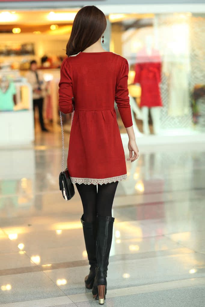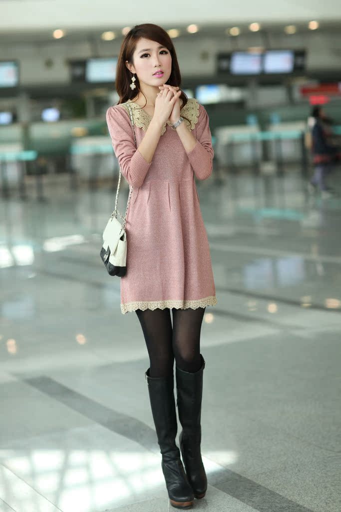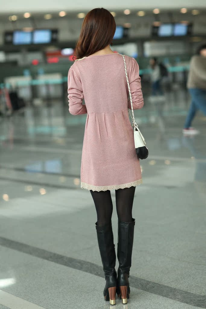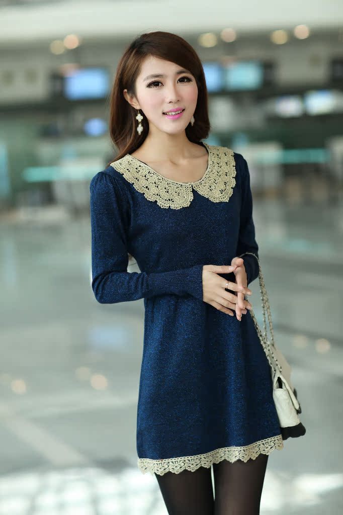 X615批发酷比兔 2013春装新款圆领蕾丝花边针织衫毛衣裙 连衣裙