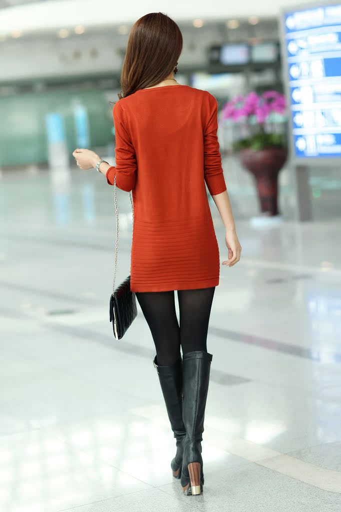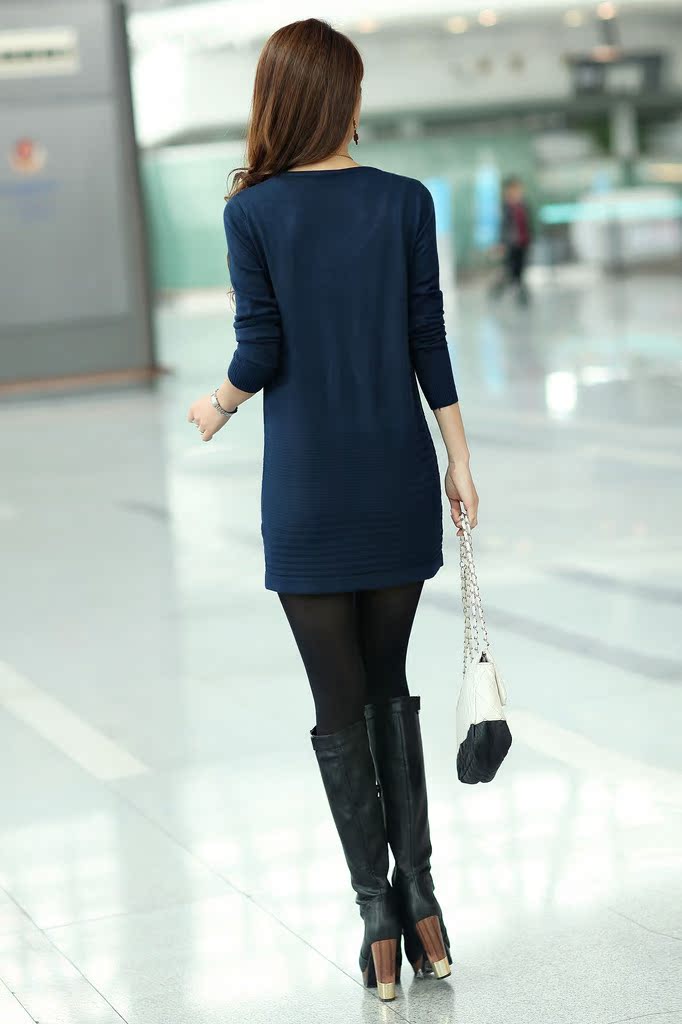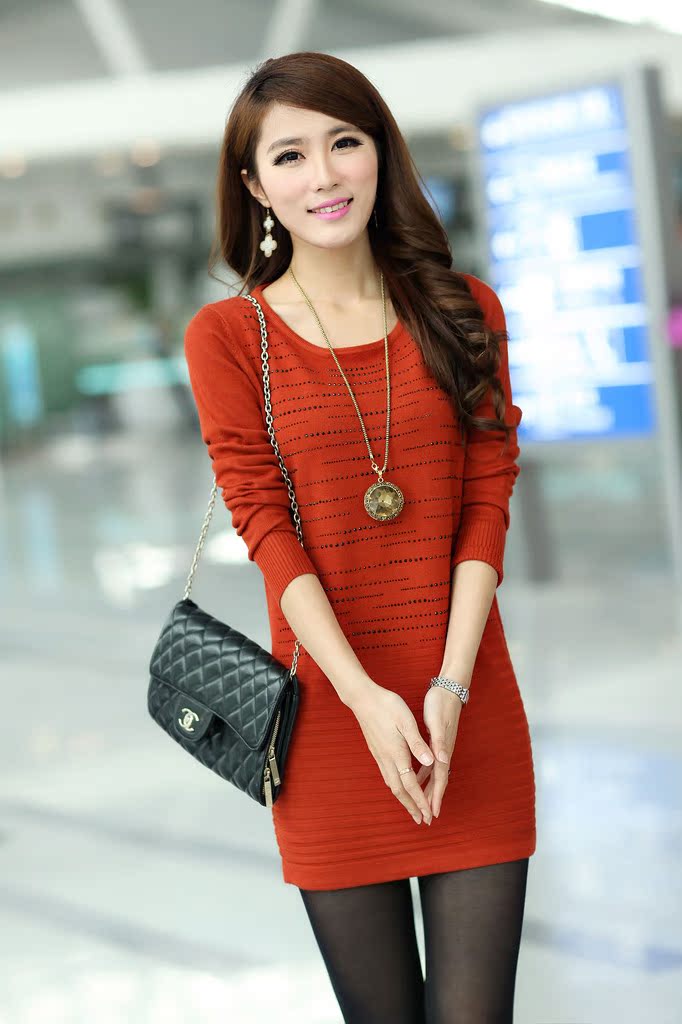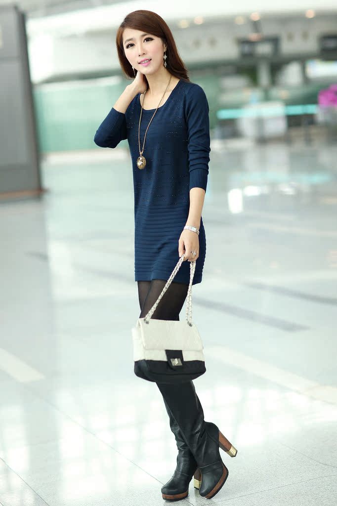 X537批发酷比兔 2013春装新款圆领中长款打底针织衫毛衣裙