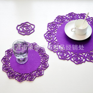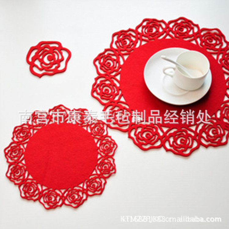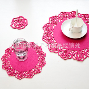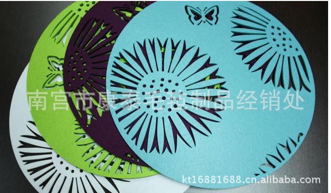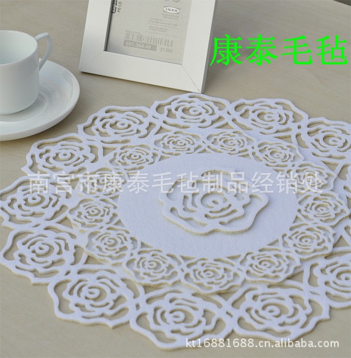 【宝贝名称】:毛毡制品 圆形镂空花杯垫