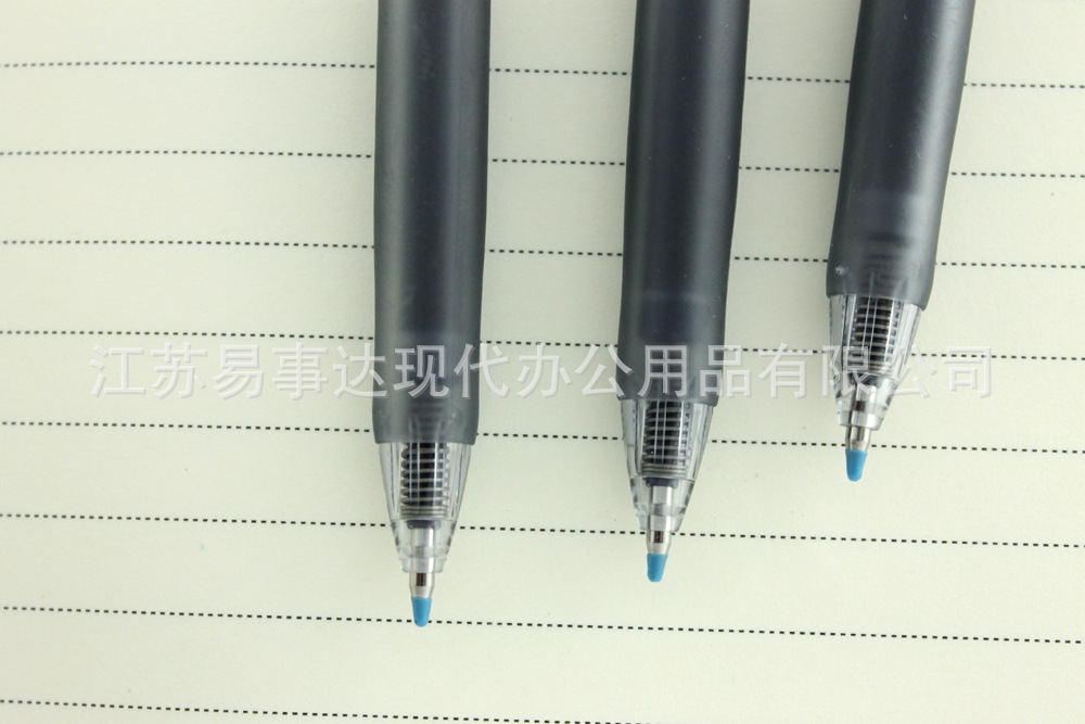 0.5mm直径滚珠,不锈钢笔咀,双珠设计,防止漏墨,防水、防晒。另有独特笔夹设计,插入衣袋时,笔咀自动收入笔杆内,不会沾污衣服,极受专业人士欢饮及喜爱。