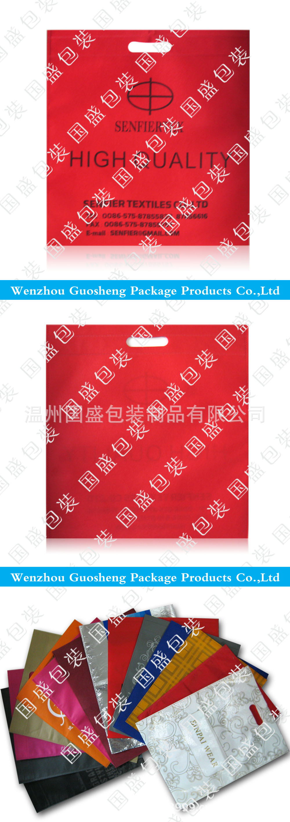 温州国盛包装制品有限公司-相关介绍 | 本公司视频介绍:http://www.tudou.com/programs/view/zNzzcUpMKho/ | 温州国盛工艺制品厂坐落在"中国印刷城""中国礼品城"之称的龙港,依靠自身的滚动发展,现已成为温州地区实力的工艺品生产商之一。 公司产品集:无纺布袋、各种环保袋、服装用品、包装袋、PVC袋、证件夹、证件套、文件袋、礼品袋; 袋子;pvc人造革 胸卡;参展证;服装拉链袋;等高中低档产品。 精良的设备、先进的工艺、高素质的技术人员和完善的管理,使本厂产品始终处于国内外同行业领先地位,深受广大顾客的好评。 竭诚欢迎国内外客商前来参观洽谈订货,携手合作、共创辉煌。 24小时咨询热线: 公司电话: 18968978108 公司传真: 86 577 68007967 公司网站:http://www.guosheng888.com |