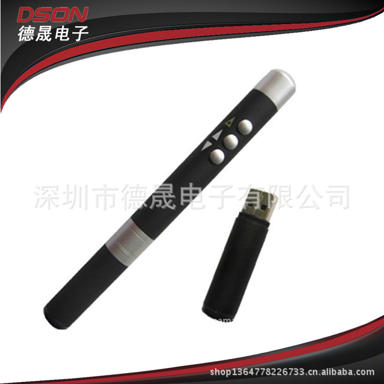 遥控激光笔内嵌有红外线发射器、激光指示器,有激光按钮、上翻页键、下翻页键三个功能键。红外线发射器是遥控电脑的一个主要信号设备,翻页键是控制讲解内容的快捷按钮.激光按钮,看似普通,却是你在简报中圈点简报重点,引导听众的注意力的一个武器。