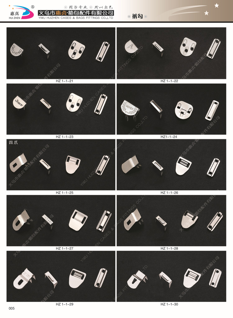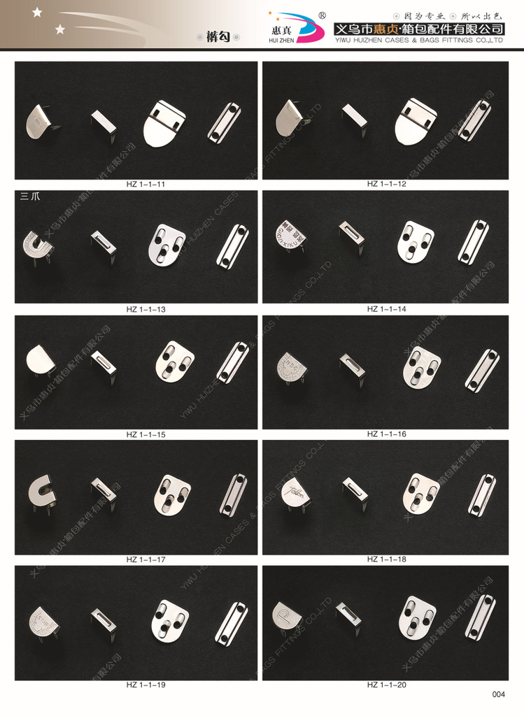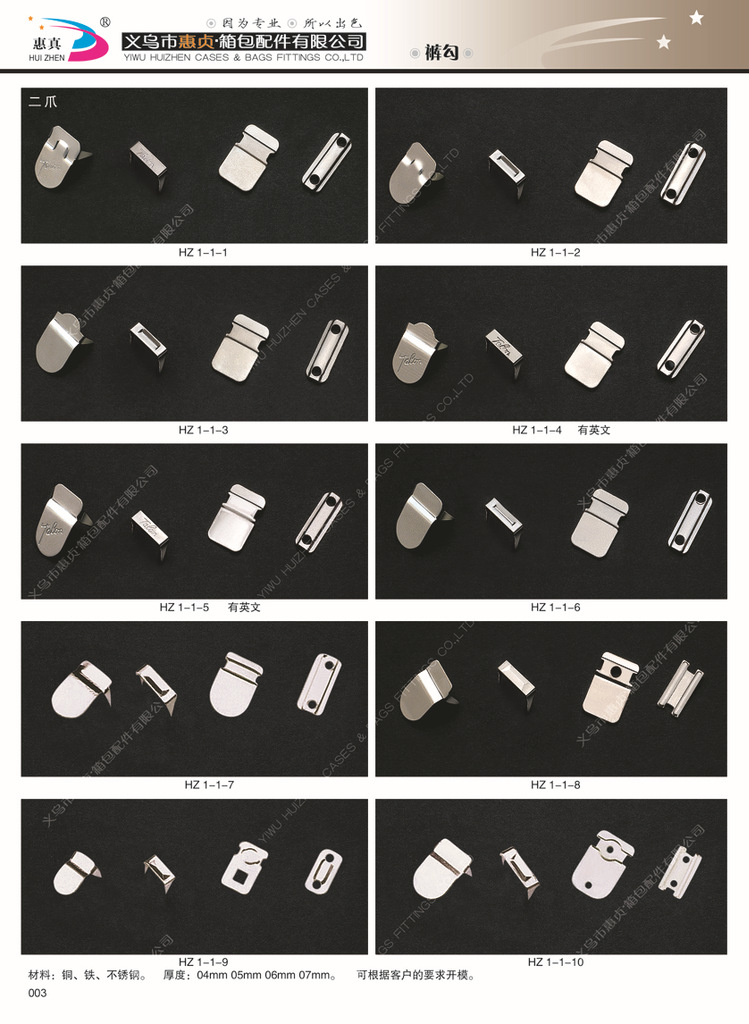 义乌市惠贞箱包配件有限公司创建于1992年,通过创业积累,创办公司于2005年,注册资金200万元。厂区座落于义乌市稠州西路230巷9-1号,拥有行业内先进的生产线,冲床16套,新型压铸机5套,及抛光机、烘干机等配套设施。厂区面积近六亩,厂房及仓储、办公、职工生活区面积近8000平米,职工60余人其中专业技术人员10余人;拥有自主网站,多个阿里巴巴终端及诚信通网销平台,网络销售精英8人;国际商贸城多个经营店铺,银海一区辅料专业街入口三间店面,店面营销人员近20人。公司专业生产各种裤勾、钮扣、四合扣等服装辅料、皮具箱包配件、饰品配件,压铸、冲压等多种五金产品,同时也可根据客户来样要求,自行研制模具,实现生产、销售、新产品研发、物流配送一条龙服务。带钢等原材料成批采购于江苏昆山等大型企业。