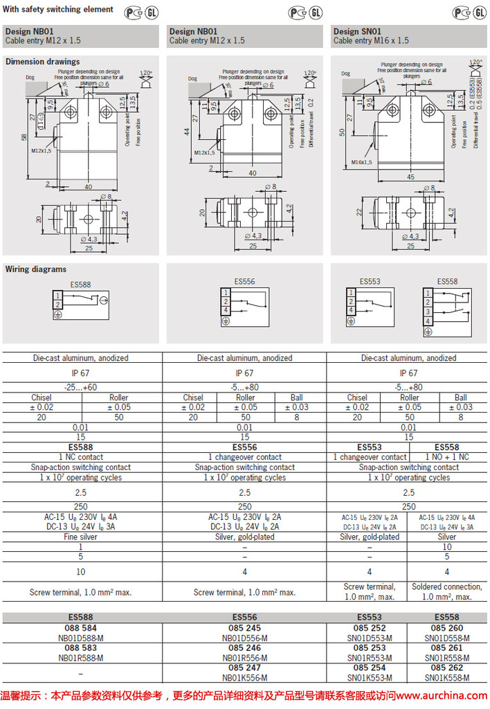 These switches are used in mechanical and systems engineering for controlling and positioning tasks. The robust housings made of die-cast anodized aluminum are characterized by their high level of mechanical endurance and corrosion resistance. Positive Break Safety Contacts and LED status indicators are available on certain models.