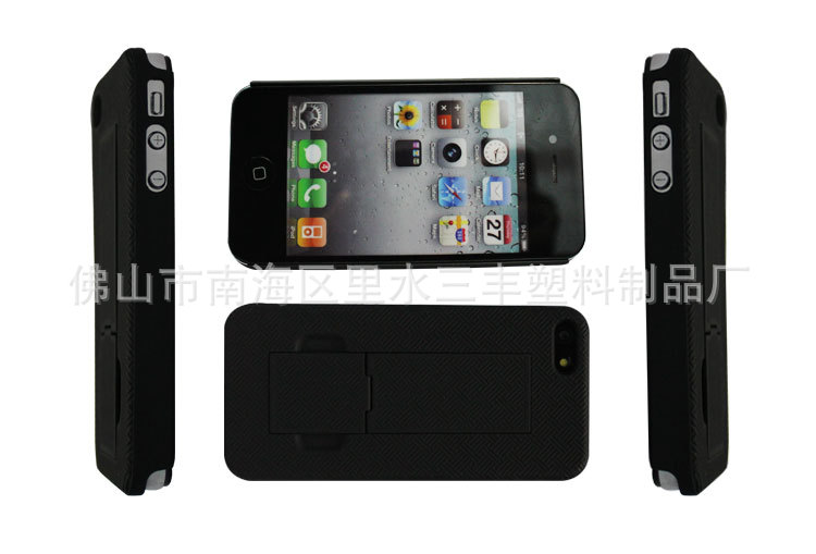 新款4代手机保护套 苹果iphone4草席纹支架滑套 二合一手机壳