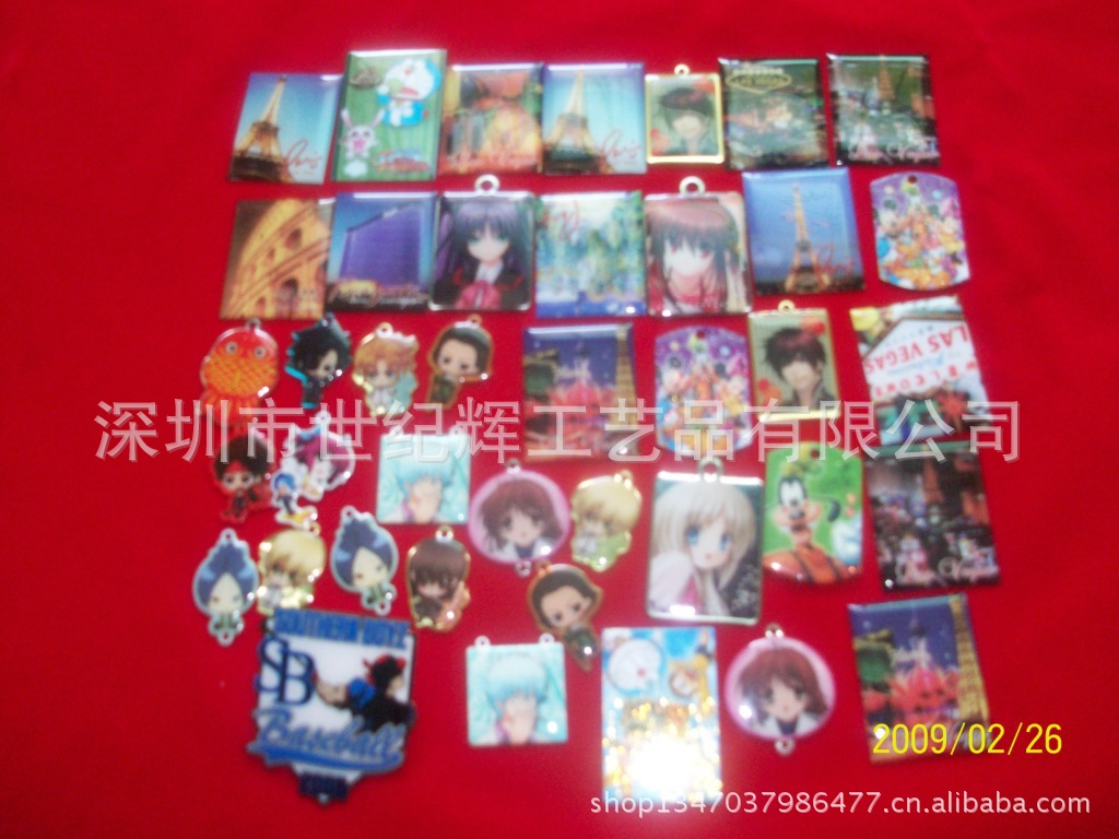 我司集绘图**菲林**蚀板**雕模**压铸(冲压)**焊针(烧焊)**抛光**电镀**入色(烤漆,假珐琅,波丽漆,平烤,印刷)**滴胶**包装等于一体。公司以客人来样来图加工为主,所生产的徽章、匙扣等工艺品产品广泛应用于各种广告促销、纪念品、旅游业、服饰、家私、皮具及电子行业。