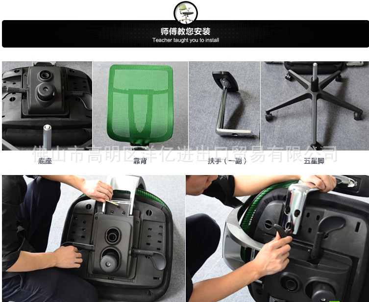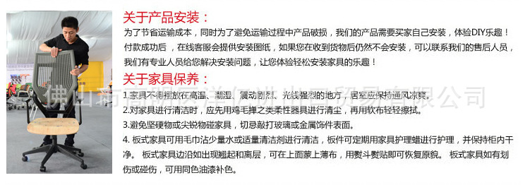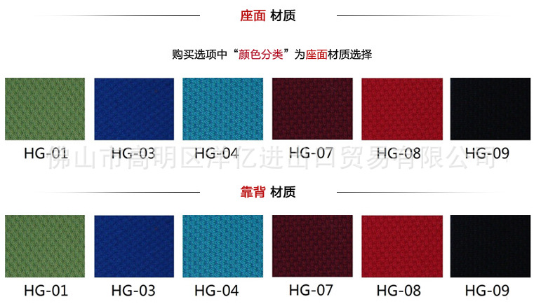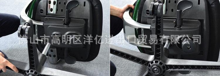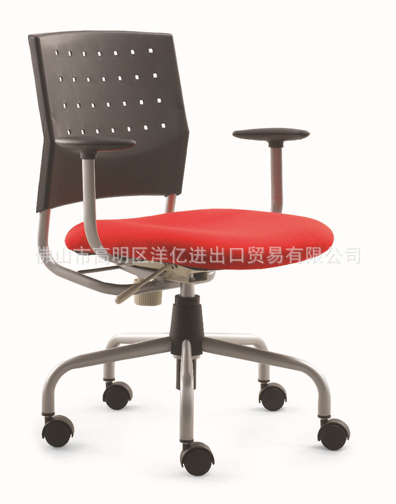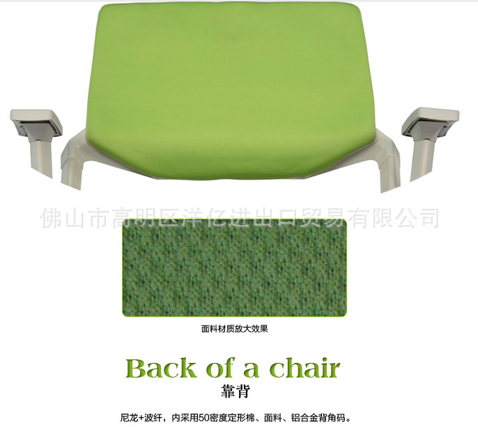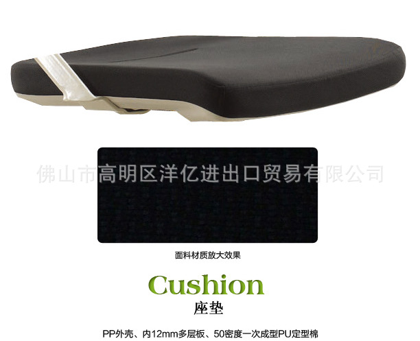Back: Nylon + wave fiber, using 50 density amorphous cotton, fabric, aluminum alloy back corner. A: PP shell, 12mm multilayer board, 50 density forming a PU setting cotton, armrest: PP. The chair frame: using custom mold foot triangular tube (30*30*2.0). Castor: nylon casters, (casters specifications: Phi 50MM), castor after 50000 times of resistance and fatigue test without rupture。