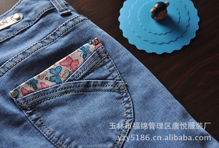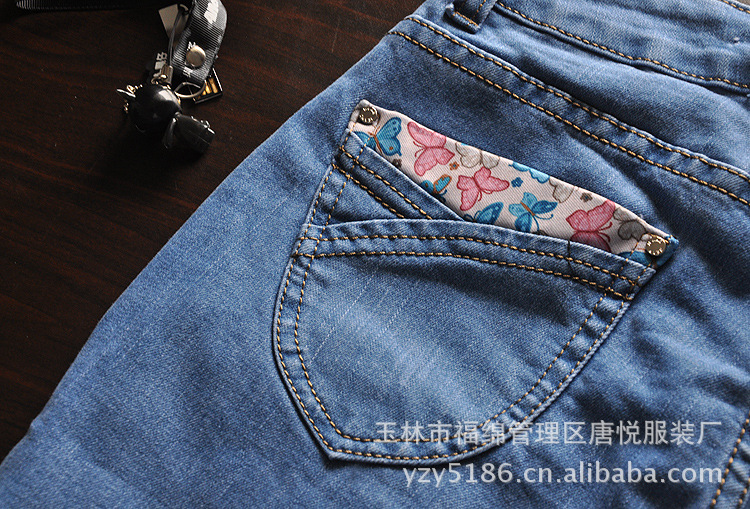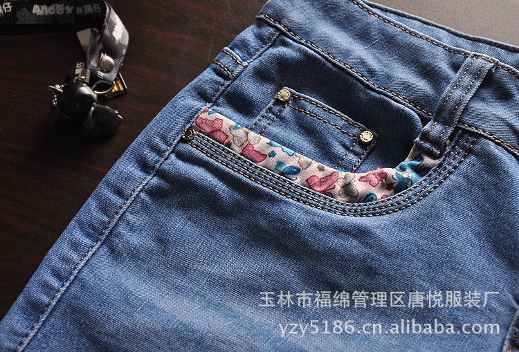 本公司主要生产:女士牛仔裤,男士牛仔裤,牛仔短裤,牛仔中裤并结合欧美,韩版等各种风格的牛仔系列饰。产品远销全球以及全国各地批发市场,国外以非洲,东南亚,如马来西亚,菲律宾,缅甸,泰国居多。质量和服务都得到了广大客户朋友的认可。产品做工精致,精选纯棉高弹性牛仔洗水布,亲肤舒适,透气好,弹性佳,不易变形,不褪色,修身廓形,经典版型,简约时尚,可以随心搭配服饰,衬托出你干净整洁的精神面貌和窈窕的身材。