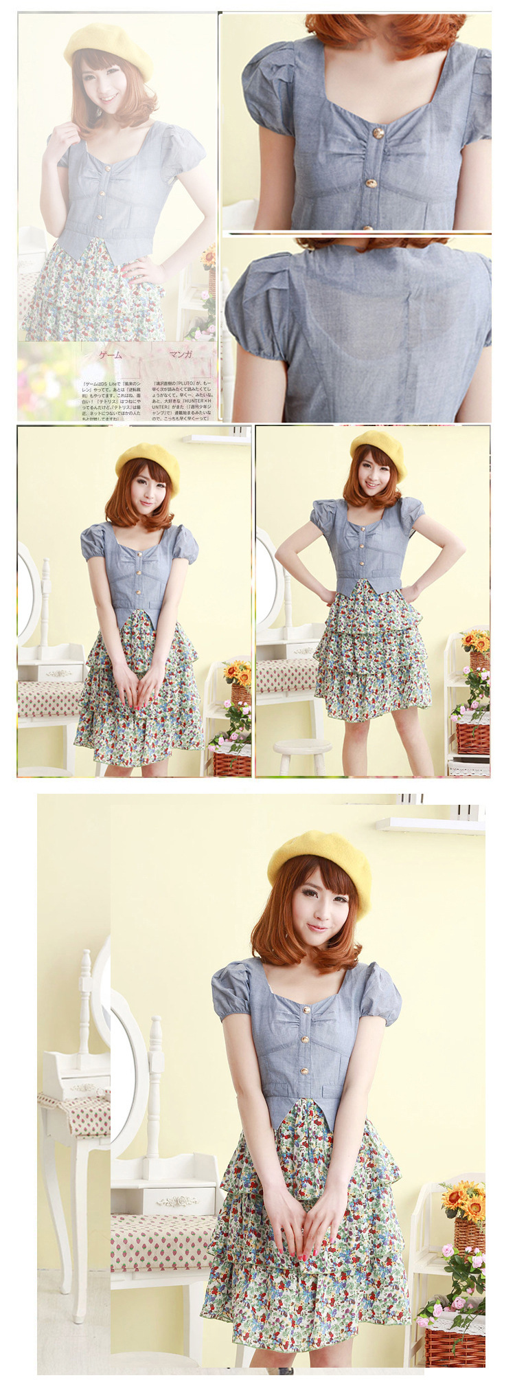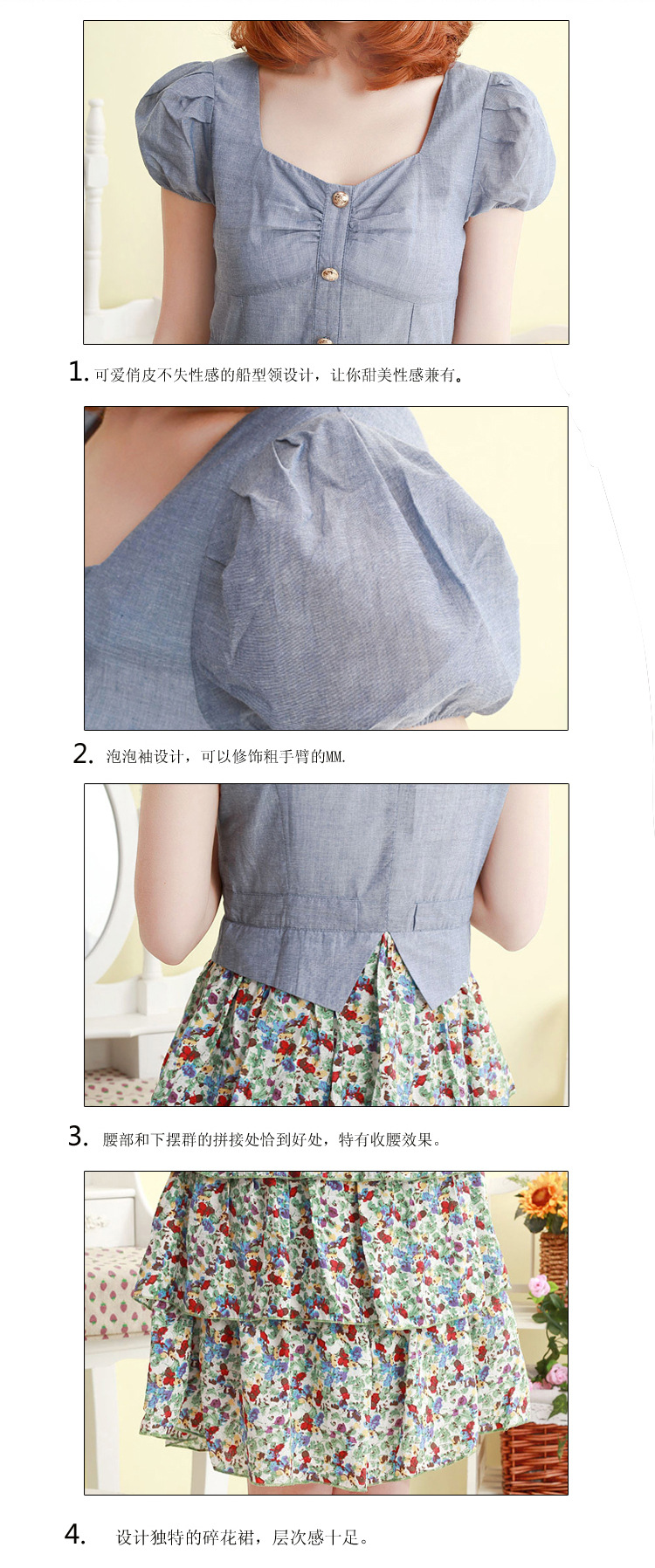 2013春夏新款 田园风格甜美清新小碎花拼接打底连衣裙 连衣裙批发