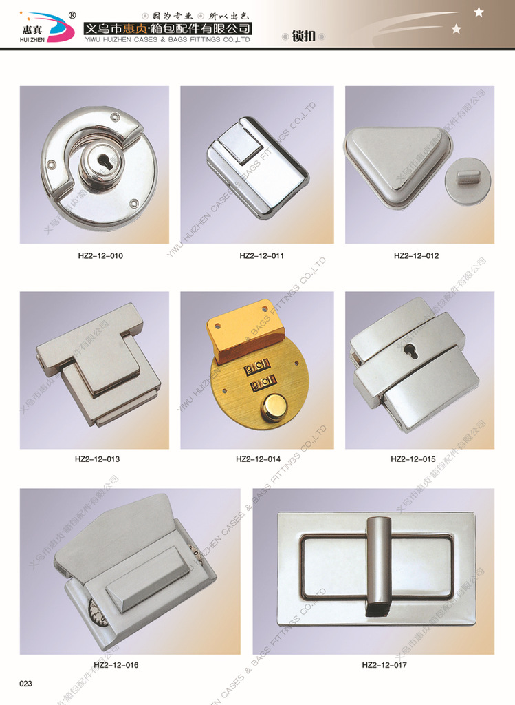 义乌惠贞箱包配件公司,专业生产箱包五金配件,有箱包锁,挂钩(狗扣),皮带扣/针扣,方扣/日字扣,吊饰扣/装饰扣,鸡眼,撞钉,磁钮等等,品种齐全。自产自销,价格优惠,货期准,欢迎有意客户来电咨询。
