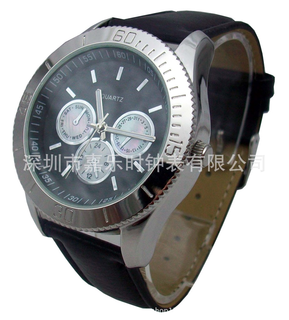 5、手表(仅限于石英表)在常温5°C~35°C的范围内可稳定准确运行,温度超过50°C会导致电池漏电或缩短电池寿命。请勿将表长时间放在低温-10°C环境内,因为冷气会导致时间走慢或走快,当手表返回常温,运行回复正常;