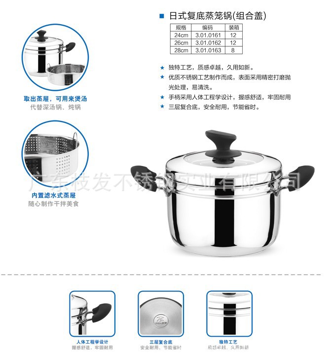 |  | 广东枝发不锈钢四层多用组合盖蒸锅 易蒸宝多用节能蒸锅 独家产品 | 77.00 | |