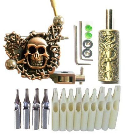 纹身器材基本有:纹身机器;纹身电源,勾线,脚踏;纹身针,针嘴,手柄,一次性的一般是连体的,不锈钢的又分连杆什么的;纹身色料,色料杯,色料杯架;纹身图集,转印机;卫生产品:护理垫,胶带,一次性剃须刀,桌垫,床垫,袖套,勾线管带,针嘴刷,消毒袋,弃针盒,口罩等;辅助器材:纹身笔,纹身机套,纹身机架,针嘴架,手柄架,手架,腿架,展示架,练习皮,转印纸,转印膏,麻药,压舌板,垫针塞,垫针环,洗纹身机,针嘴刷等。