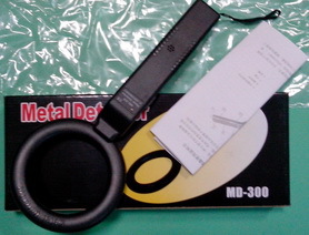 2.手握金属探测器的手柄位置部分,波动位于左侧的三挡位开关从OFF位置--报警声位置 ,探测器上的绿色LED电源批示灯亮,并能听到一声短暂的BEBE声。