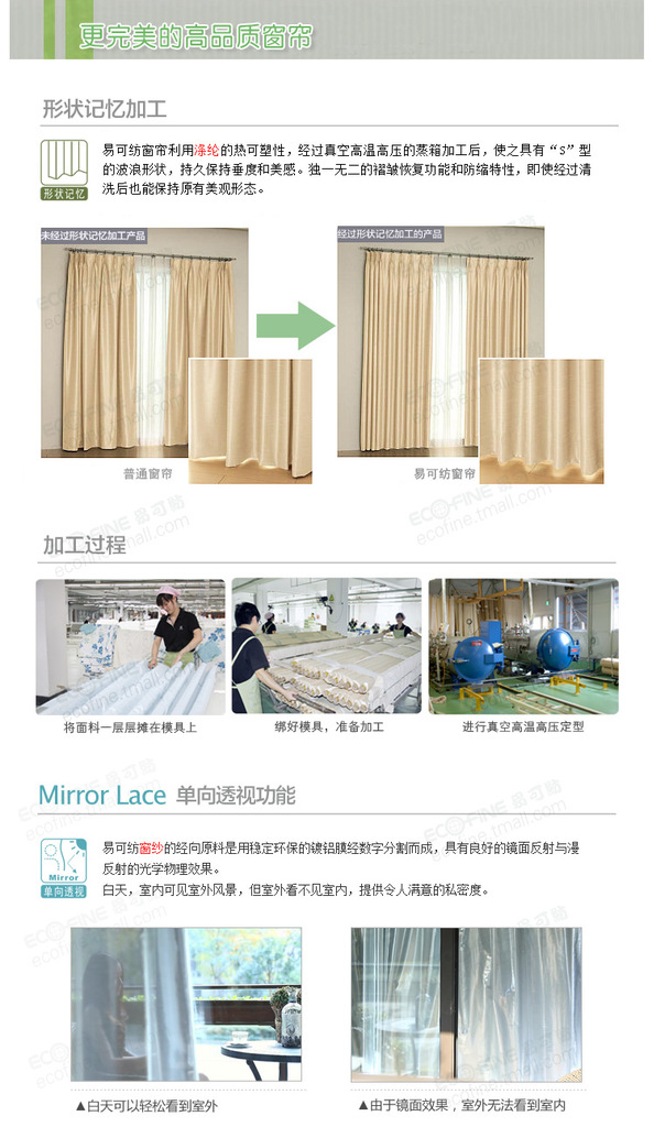 易可纺坚信,质优价廉的规格窗帘必引带出国人窗帘消费的风潮和时尚。
