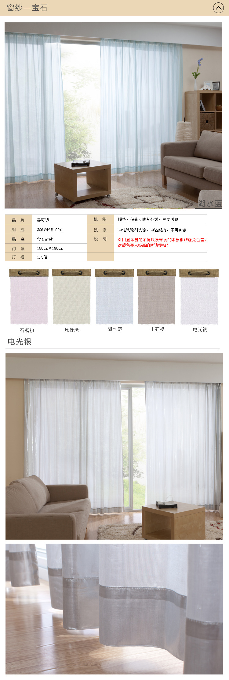 防紫外线:过滤83%强烈紫外线,在保证人体健康的同时,防止室内物品及家具、沙发的老化。
