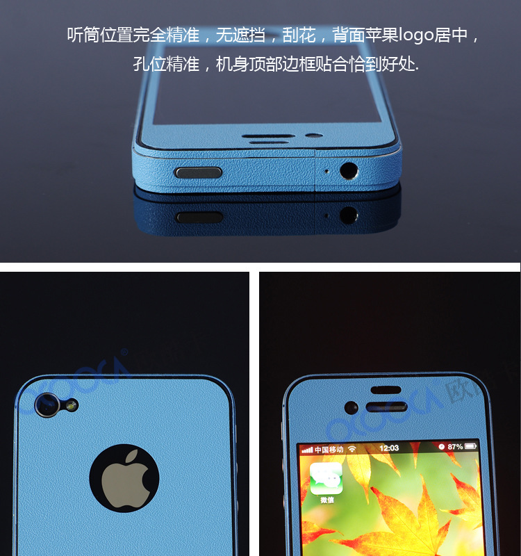 厂家直销苹果iphone4 4S珍珠皮贴膜含有11个颜色:蓝色、黄色、红色、橙黄、黑色、白色、银色、紫色、绿色、桃红、粉色。