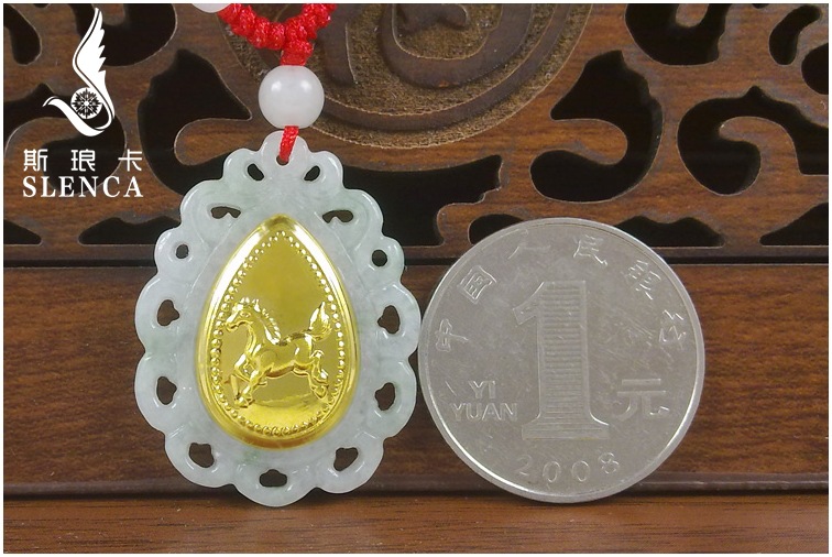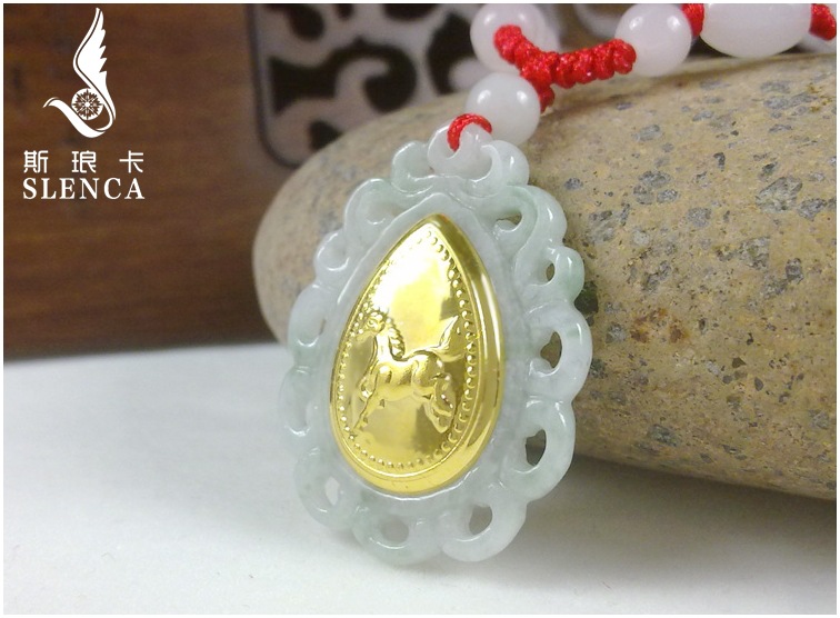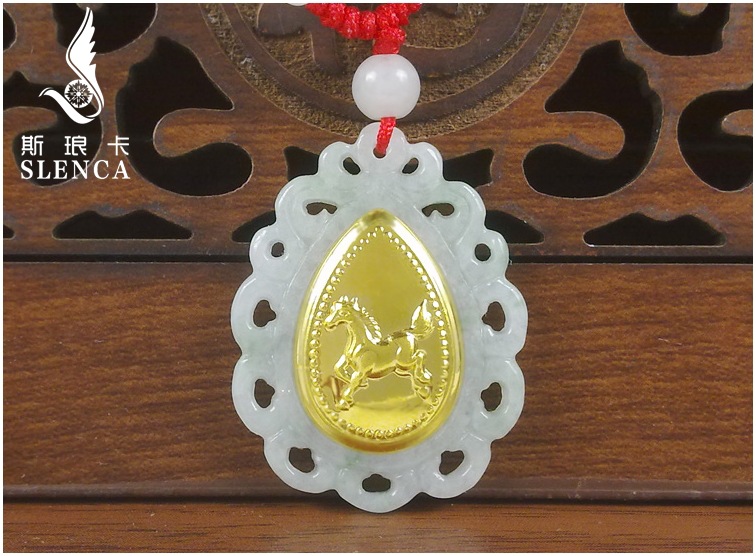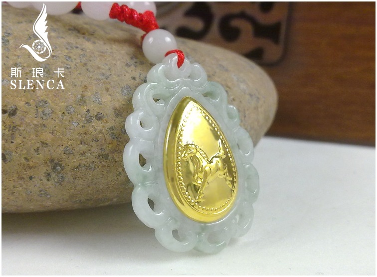 【金镶玉介绍】 自古以来,翡翠一直是最受人们喜爱的珠宝之一。翡翠的绿色与红色象征幸福与兴旺。人们佩戴翡翠饰物,可以防身避祸,逢凶化吉,祛病延年。赠送和佩戴翡翠饰物,预示着对爱情的忠贞。优质翡翠是当今世界价格昂贵的宝石品种,是高档玉料。同时也是高档工艺品“金镶玉”的最好原材料。“金镶玉”产品既倡导时尚,又弘扬传统;玉石与金属的巧妙结合,彰显了“玉”的高贵品质,同时也喻示了中国传统文化中的“金玉良缘”,象征无限美好。产品以优质玉石为原材料,嵌入黄金,经多道工艺精琢而成。