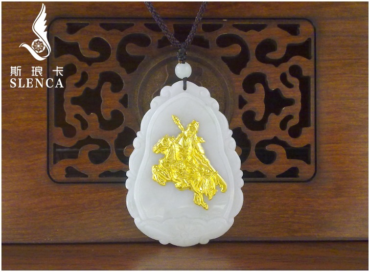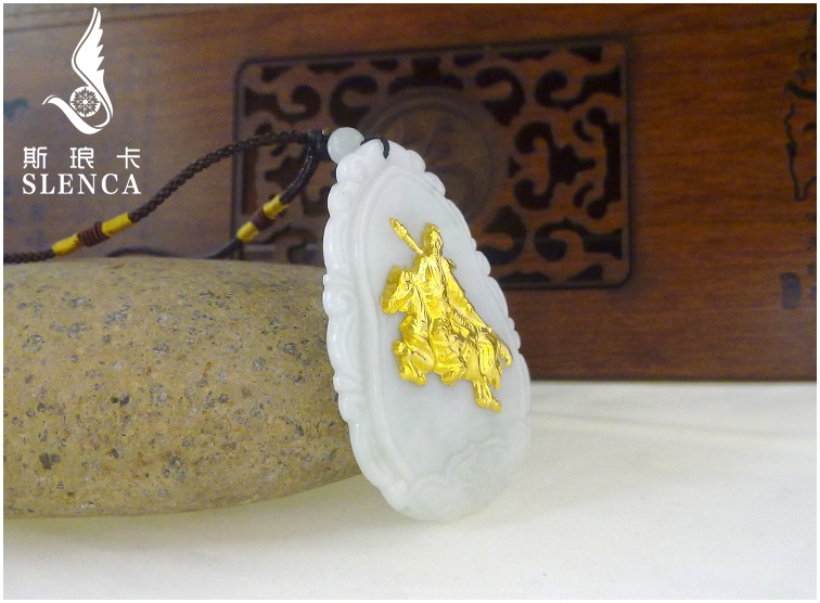 【金镶玉介绍】 自古以来,翡翠一直是最受人们喜爱的珠宝之一。翡翠的绿色与红色象征幸福与兴旺。人们佩戴翡翠饰物,可以防身避祸,逢凶化吉,祛病延年。赠送和佩戴翡翠饰物,预示着对爱情的忠贞。优质翡翠是当今世界价格昂贵的宝石品种,是高档玉料。同时也是高档工艺品“金镶玉”的最好原材料。“金镶玉”产品既倡导时尚,又弘扬传统;玉石与金属的巧妙结合,彰显了“玉”的高贵品质,同时也喻示了中国传统文化中的“金玉良缘”,象征无限美好。产品以优质玉石为原材料,嵌入黄金,经多道工艺精琢而成。