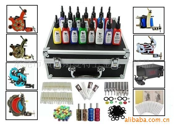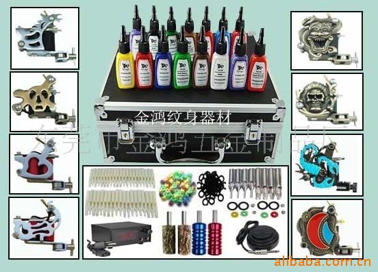 纹身器材基本有:纹身机器;纹身电源,勾线,脚踏;纹身针,针嘴,手柄,一次性的一般是连体的,不锈钢的又分连杆什么的;纹身色料,色料杯,色料杯架;纹身图集,转印机;卫生产品:护理垫,胶带,一次性剃须刀,桌垫,床垫,袖套,勾线管带,针嘴刷,消毒袋,弃针盒,口罩等;辅助器材:纹身笔,纹身机套,纹身机架,针嘴架,手柄架,手架,腿架,展示架,练习皮,转印纸,转印膏,麻药,压舌板,垫针塞,垫针环,洗纹身机,针嘴刷等。