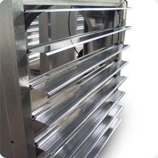 负压风机百叶窗: 采用独特的百叶窗启闭系统,不利用动力,转动的力量,而是利用重力平衡。自动闭合,防风、防尘、美观大方,拆卸方便 |