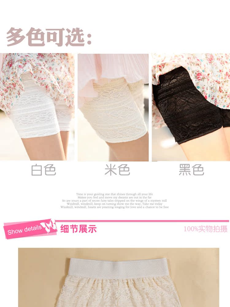 喜慕年华2013春夏季款 韩版网纱镂空蕾丝安全裤 防走光三分安全裤