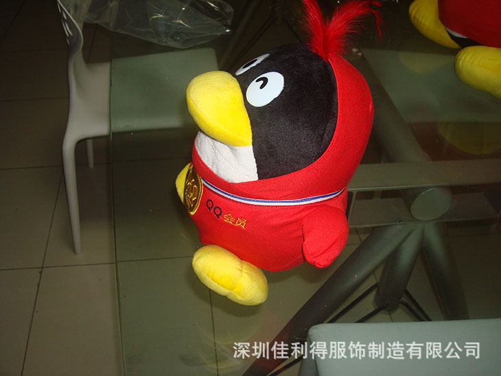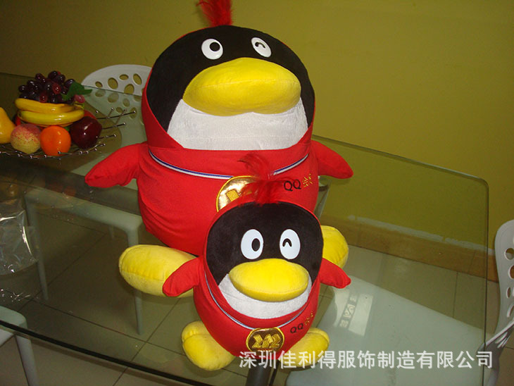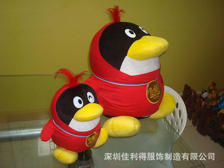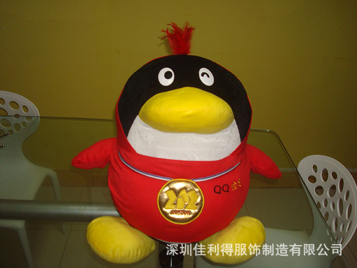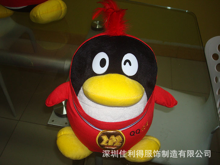 本毛绒玩具是为腾讯公司设计打样. 腾讯公司成立于1998年11月,是目前中国最大的互联网综合服务提供商之一,也是中国服务用户最多的互联网企业之一。成立十年多以来,腾讯一直秉承一切以用户价值为依归的经营理念,始终处于稳健、高速发展的状态。目前公司主要产品有IM软件、网络游戏、门户网站以及相关增值产品。2011年7月7日,腾讯公司决定斥8.9亿港元投资金山软件。 腾讯大讲堂是腾讯专业、高质的知识分享平台,分享产品技术和成功经验。腾讯大讲堂秉承腾讯大开放战略,致力于组织腾讯内部最强的专家团队对外分享腾讯技术、产品、设计交互、运营等成功经验,与业界同行一起成长。