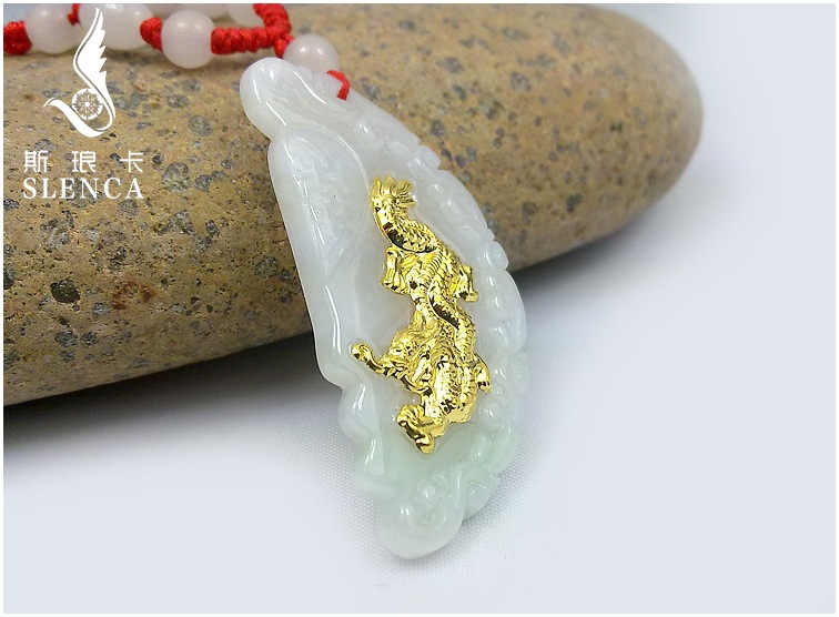 【金镶玉介绍】 自古以来,翡翠一直是最受人们喜爱的珠宝之一。翡翠的绿色与红色象征幸福与兴旺。人们佩戴翡翠饰物,可以防身避祸,逢凶化吉,祛病延年。赠送和佩戴翡翠饰物,预示着对爱情的忠贞。优质翡翠是当今世界价格昂贵的宝石品种,是高档玉料。同时也是高档工艺品“金镶玉”的最好原材料。“金镶玉”产品既倡导时尚,又弘扬传统;玉石与金属的巧妙结合,彰显了“玉”的高贵品质,同时也喻示了中国传统文化中的“金玉良缘”,象征无限美好。产品以优质玉石为原材料,嵌入黄金,经多道工艺精琢而成。
