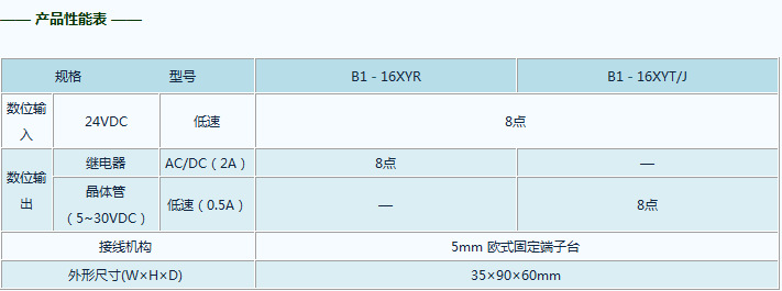 B1-16XYR 数字量扩展模块产品说明:8点24VDC数字量输入8点(R/O/T/J)数字量输出固定端子台