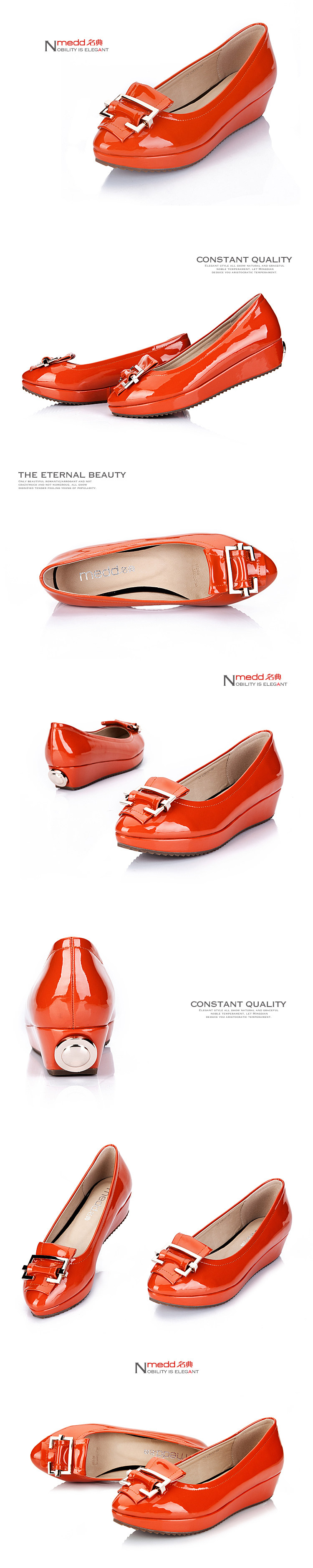名典女鞋 2013春季新款镜面PU皮带扣装饰尖头松糕跟女单鞋Y128077