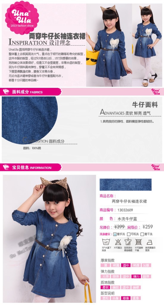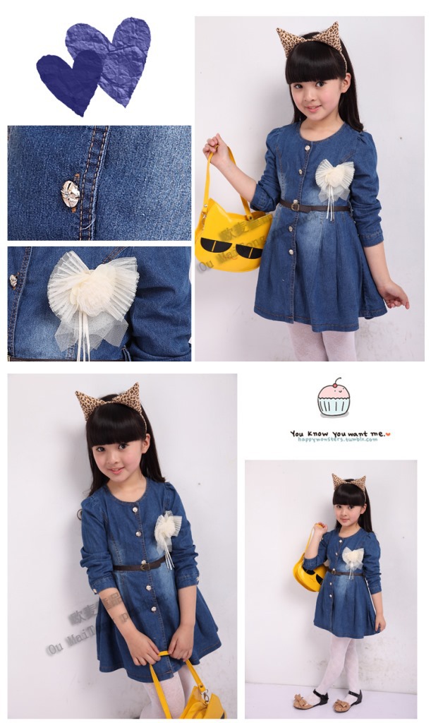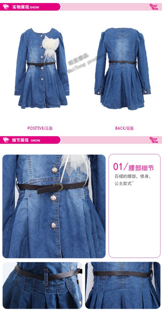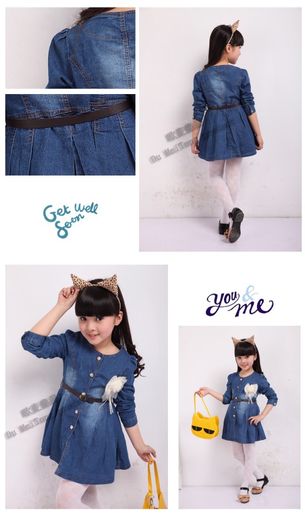 中国好货源2013春秋装新款女童中大童韩版牛仔连衣裙长袖公主童裙