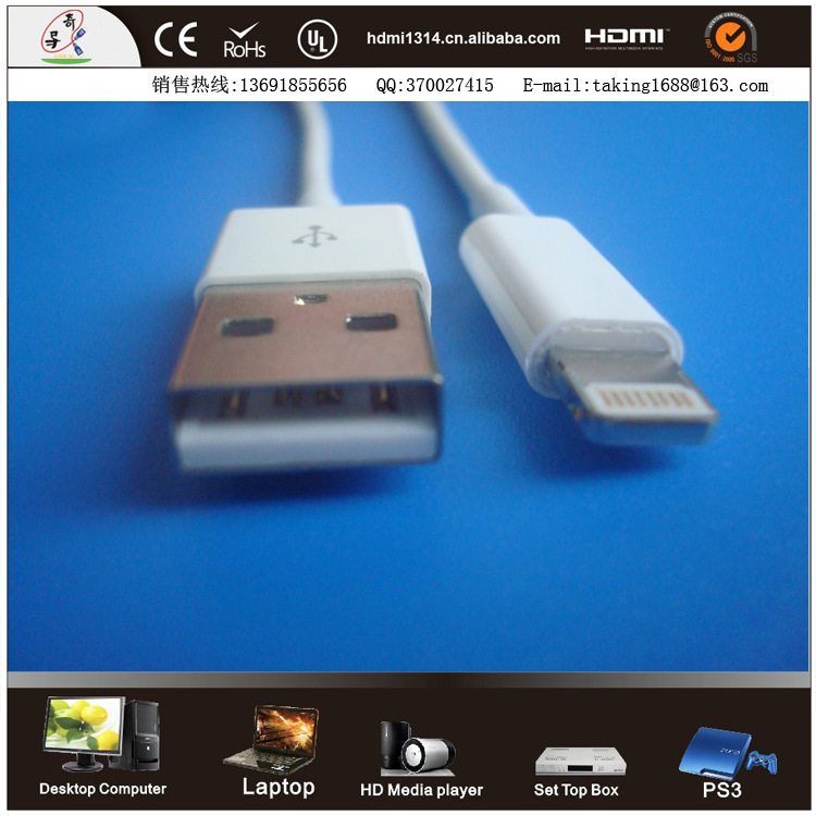 插头:USB公头 Lightning(iphong5)公头 镀镍
