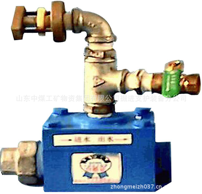 在装有超温洒水装置的地方,正常时,热敏探头能承受一定压力,堵住控制回路,使阀芯堵住出水孔。当被监测环境发生火灾,温度高于50+2℃时,热敏式易熔合金温度传感探头溶化,锥塞脱离释压孔,释压孔有水流出而释压,由于先导孔径较小,阀芯上端压强几呼为零,水压自动将阀芯推向上面,阀芯脱离出水口,进水口压力水直接从出水口流出,喷射到防火面,实现自动防灭火。