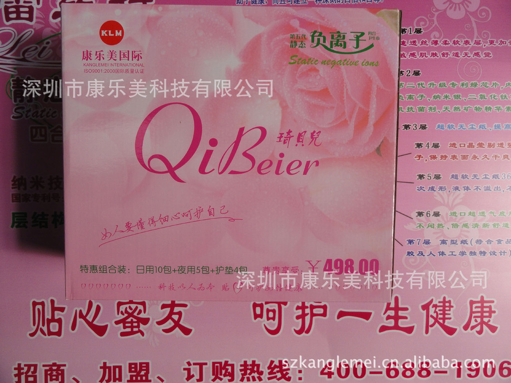 深圳康乐美科技有限公司是集科研、生产、销售为一体的高科技企业。公司主要产品:(琦贝儿)(蕾丝特)(蕾丝比特)(琦品牌负离子卫生巾、纸尿片、一次性床单、内衣、内裤等健康产品。