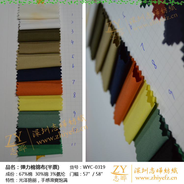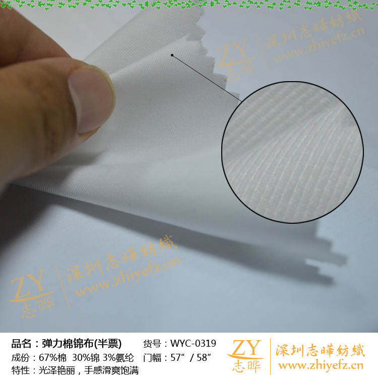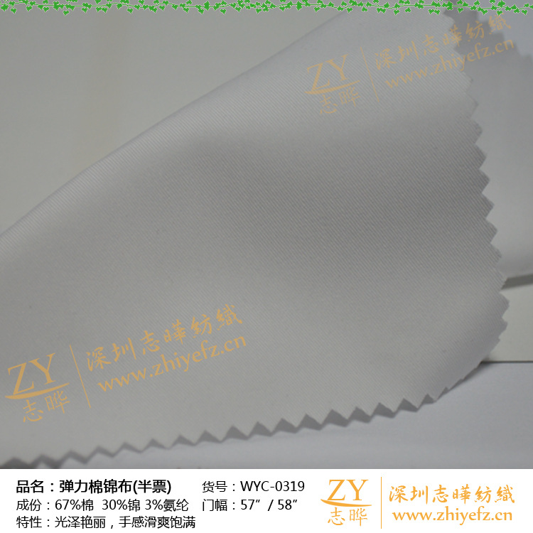 货号: WYC—0319 货名: 弹力锦棉斜纹布 成分: 100%涤纶