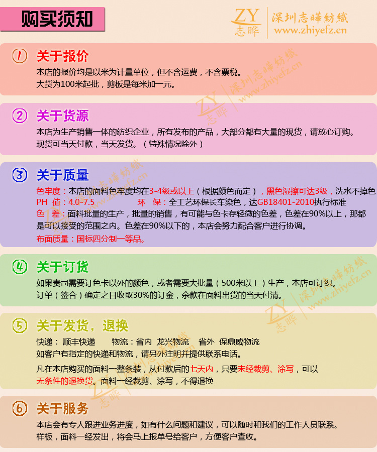 批发说明:单色1米起卖,100米以上批 订色起订量:500米 订色货期:7-15天