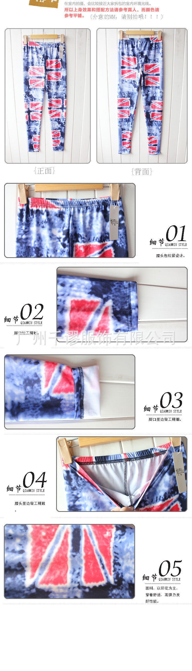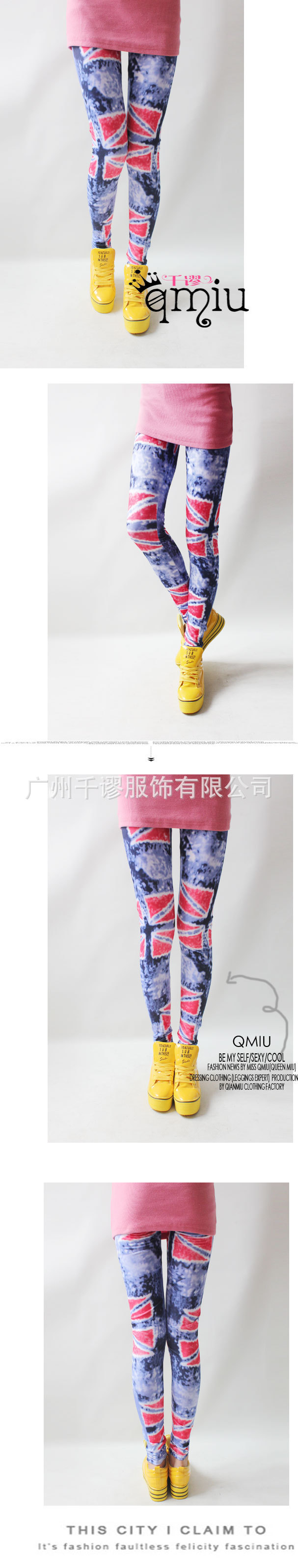 千谬9924蓝调英伦国旗九分打底裤女夏印花裤复古原单涂鸦欧美大码