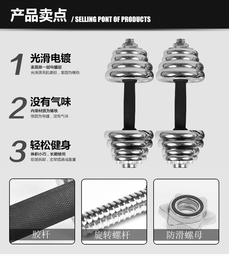 【飞尔顿】8折包邮家用健身器材 10/20/30/40KG电镀哑铃买一送三:辽宁 河南 天津 包快递