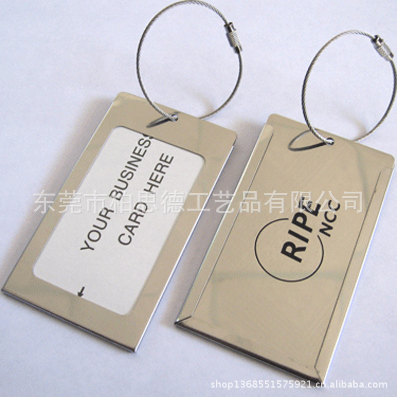 主要生产各类行李牌,马口铁行李牌,PVC行李牌,金属行李牌,李行吊牌,金属行李挂牌,行李牌生产,行李牌制作、各种商标牌,各种产品款式新颖,制作精美,质量优质,同时接受小量订做。可根据提供的图稿及样品开模制作,款式,工艺,尺寸,材料,及包装都可按客户要求更改。 我们的优势: 1:我司有独区立的模具开发设计部门。打样速度快可低至2天。为客户节约时间! 2:我司有着十几年的生产工程技术人员多名,整体生产实力强。对客户质量,货期有保障! 3:我司在样品方面可提供多款系列供客户参考设计。为客户提供便利! 4:应现在市场发展趋势,我司开发部门经常根据市场变化开发出新样品。为客户争取市场! 5:大货生产速度快。 质优、价廉、起货快。承接国内外业务,货期及时。