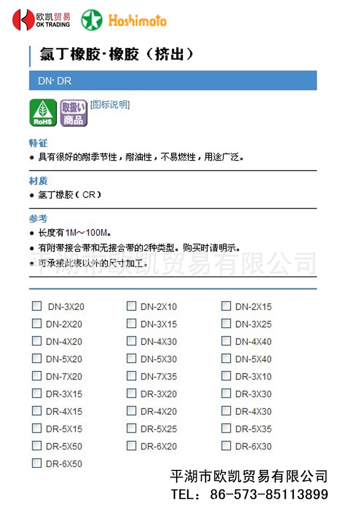 Hoshimoto 氯丁橡胶.橡胶(挤出)DR-5X25(欧凯贸易)